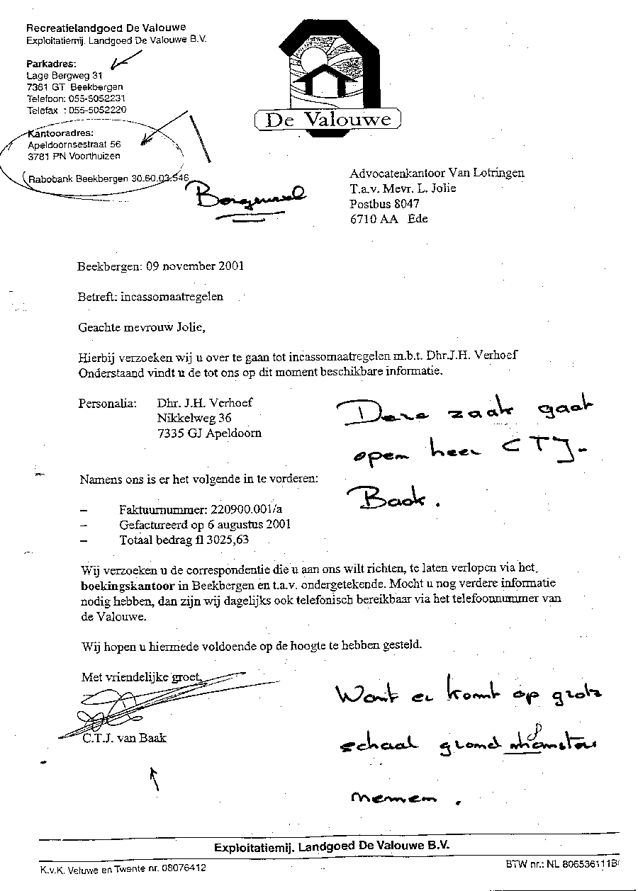 Document met procedure tegen mr. Maes van Dommerholt & van Dijk in Zwolle