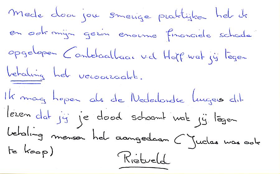 Een serie losse aantijgingen tegen mij (Rietveld) wegens onjuiste, vermeende kwalijke zaken