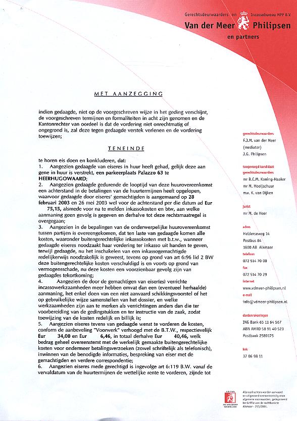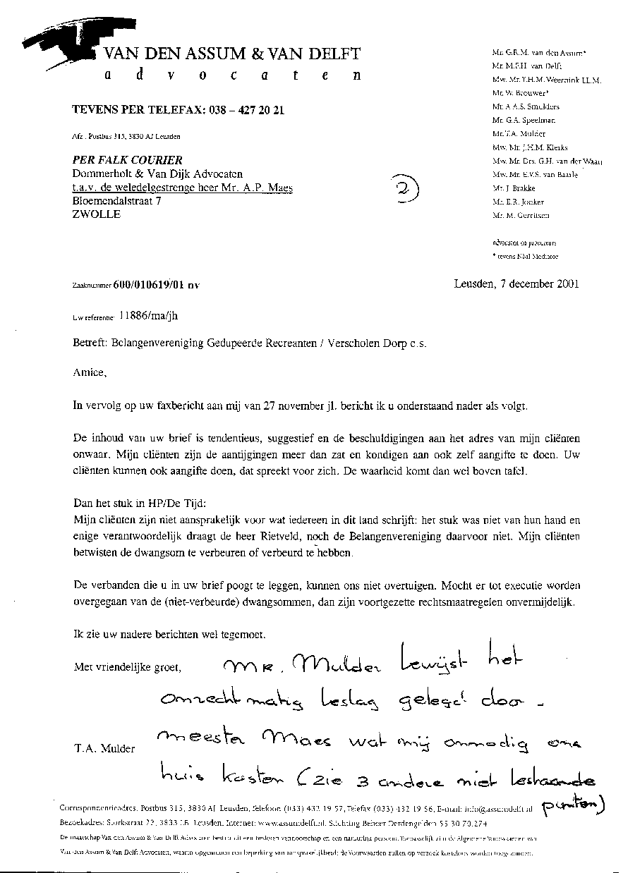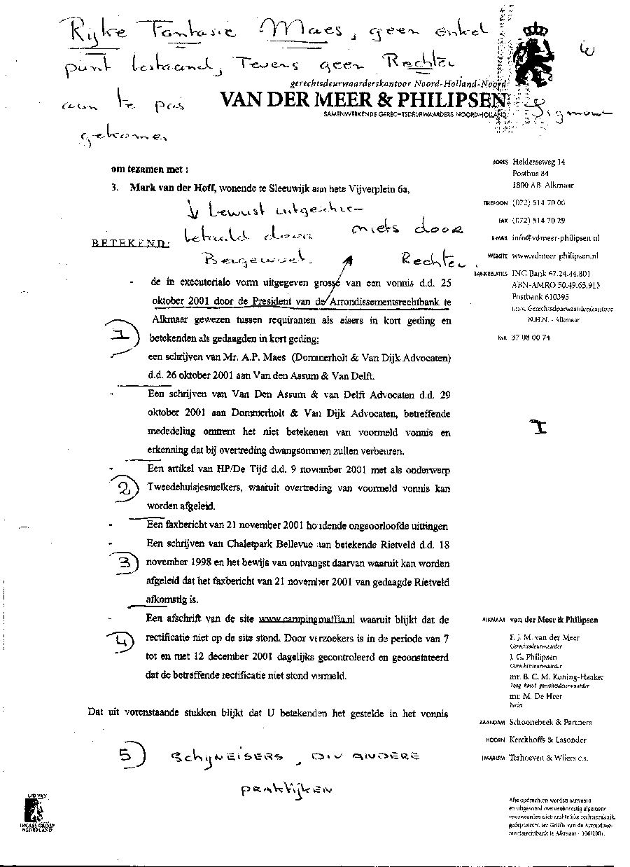 Document met procedure tegen mr. Maes van Dommerholt & van Dijk in Zwolle