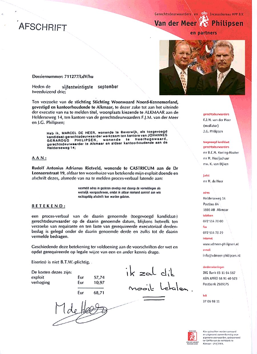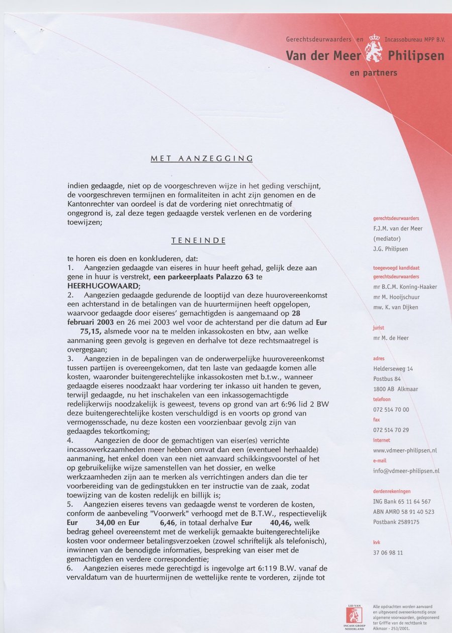 Document met procedure tegen mr. Maes van Dommerholt & van Dijk in Zwolle