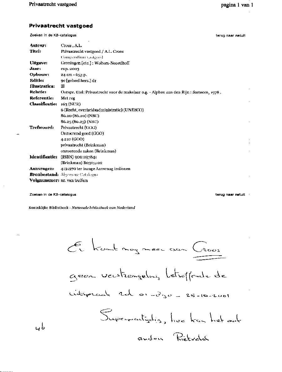 En geef dat deurwaarderskantoor eens de hint: wanneer Rietveld zijn spullen moeten worden weggehaald [mits dat al zou kunnen] moet je dat niet tevoren aankondigen. Deze wijsheid had ik al toen ik nog met plastic monsters speelde in de zandbak. Dat was aangenaam na de wetenschap wat menselijke monsters kunnen zijn. Maar dat komt vanaf nu ook terug als een boemerang, dit document gaat ook het Internet op Croes; en trek je terug uit je nevenfunctie als beschermengel voor kinderen als je dat nog niet gedaan hebt. Kom nooit meer bij deze instelling binnen omdat je kinderen in je echte leven sloopt. Jouw vrouw krijgt een levensgrote kopie van dit document dan kan zij hem inlijsten als zij nog niet wist hoe je in werkelijkheid bent Croes. Meester