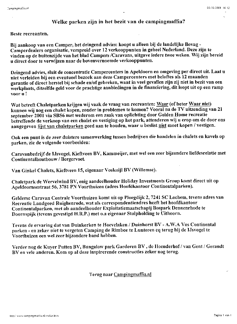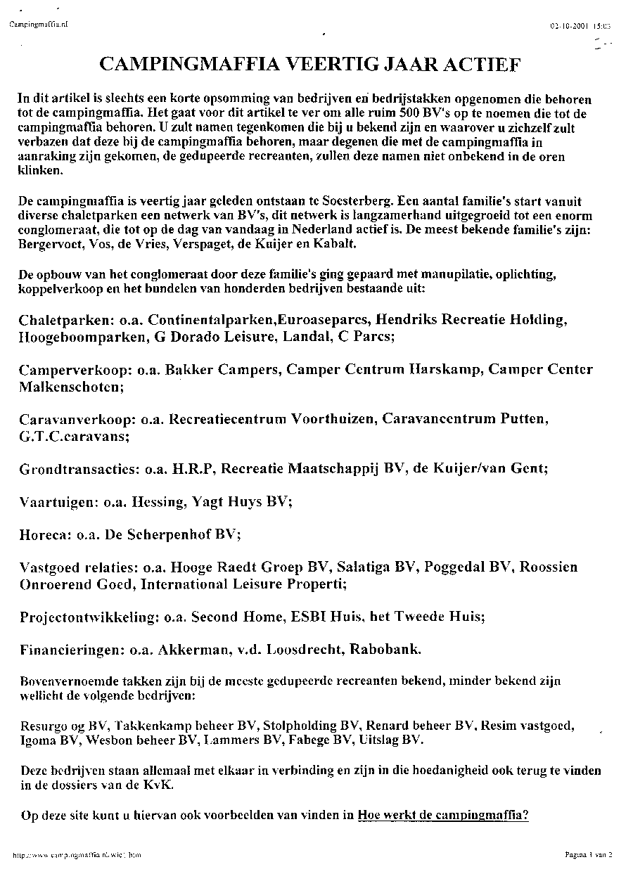 De verbannen website van Ruud Rietveld: 'Campingmaffia veertig jaar actief'