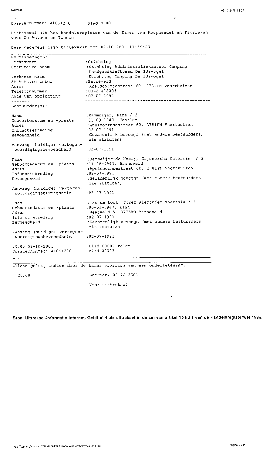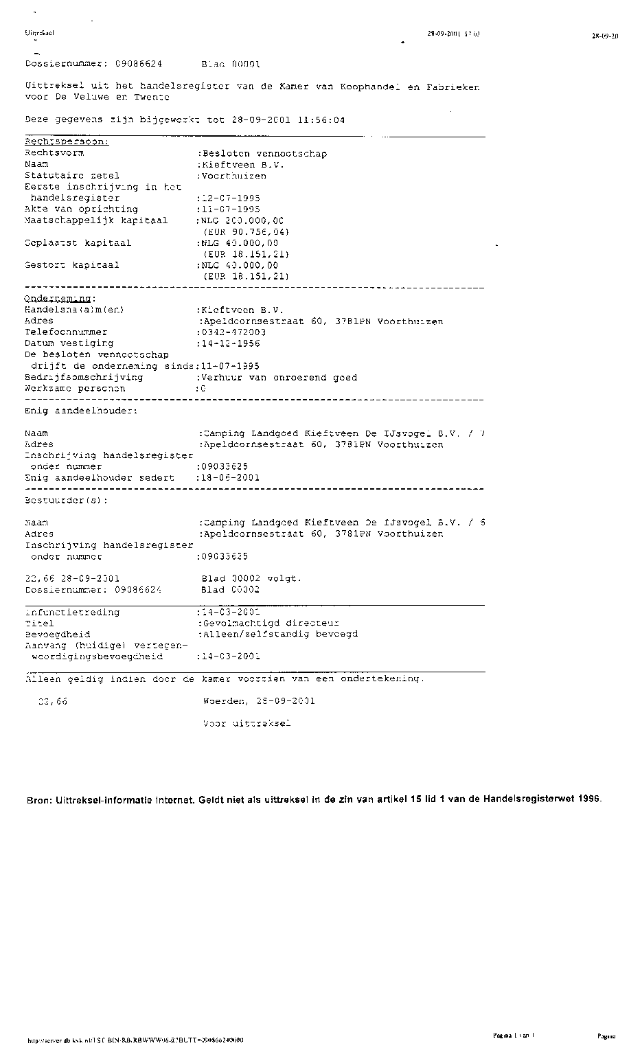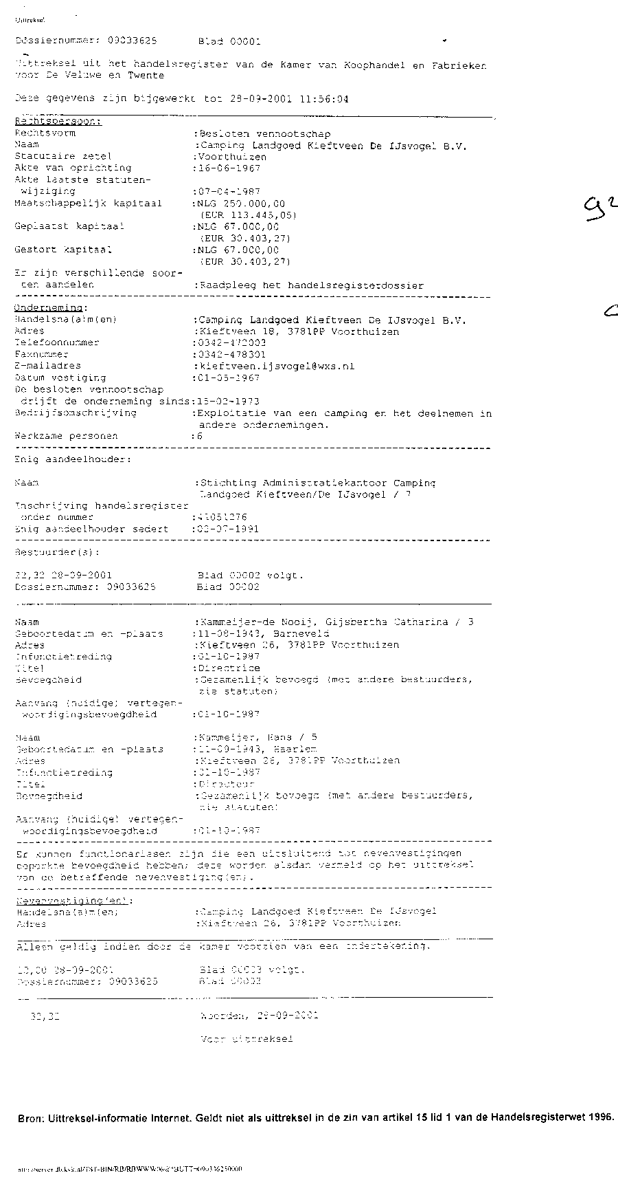 Kadastergegevens Kamer van Koophandel van conglomeraat van parken van Bergervoet sr.