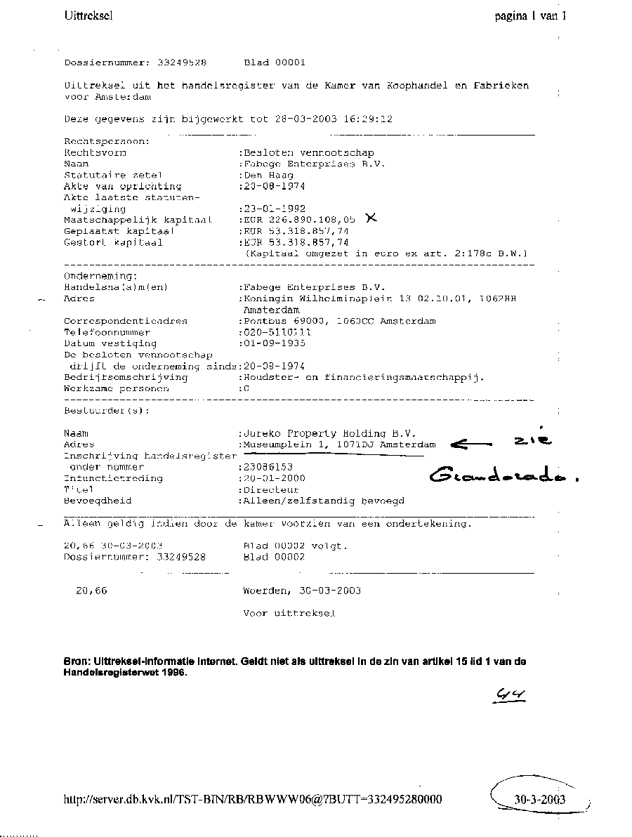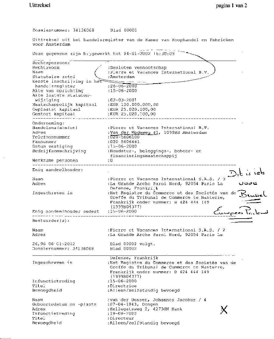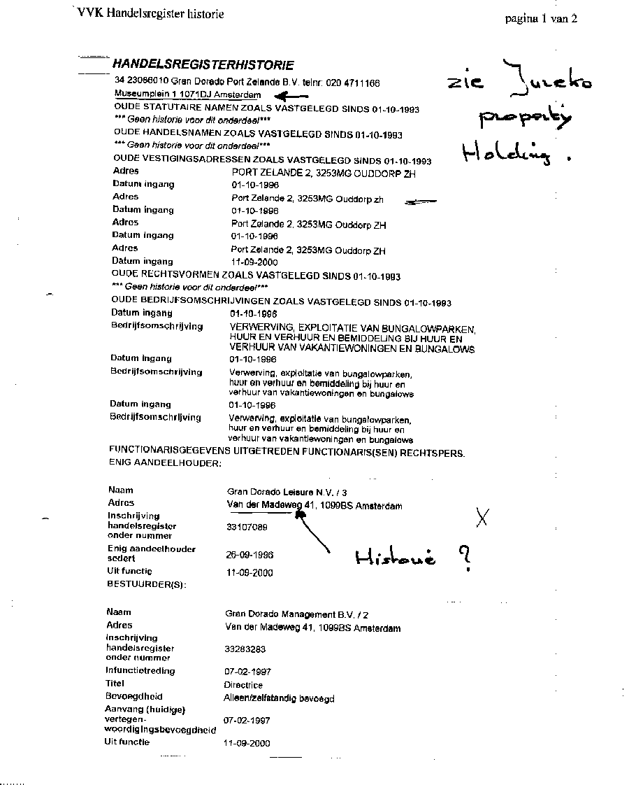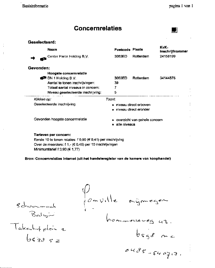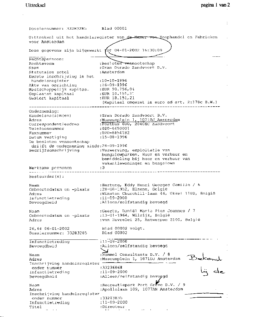 Kadastergegevens Kamer van Koophandel van conglomeraat van parken van Bergervoet sr.