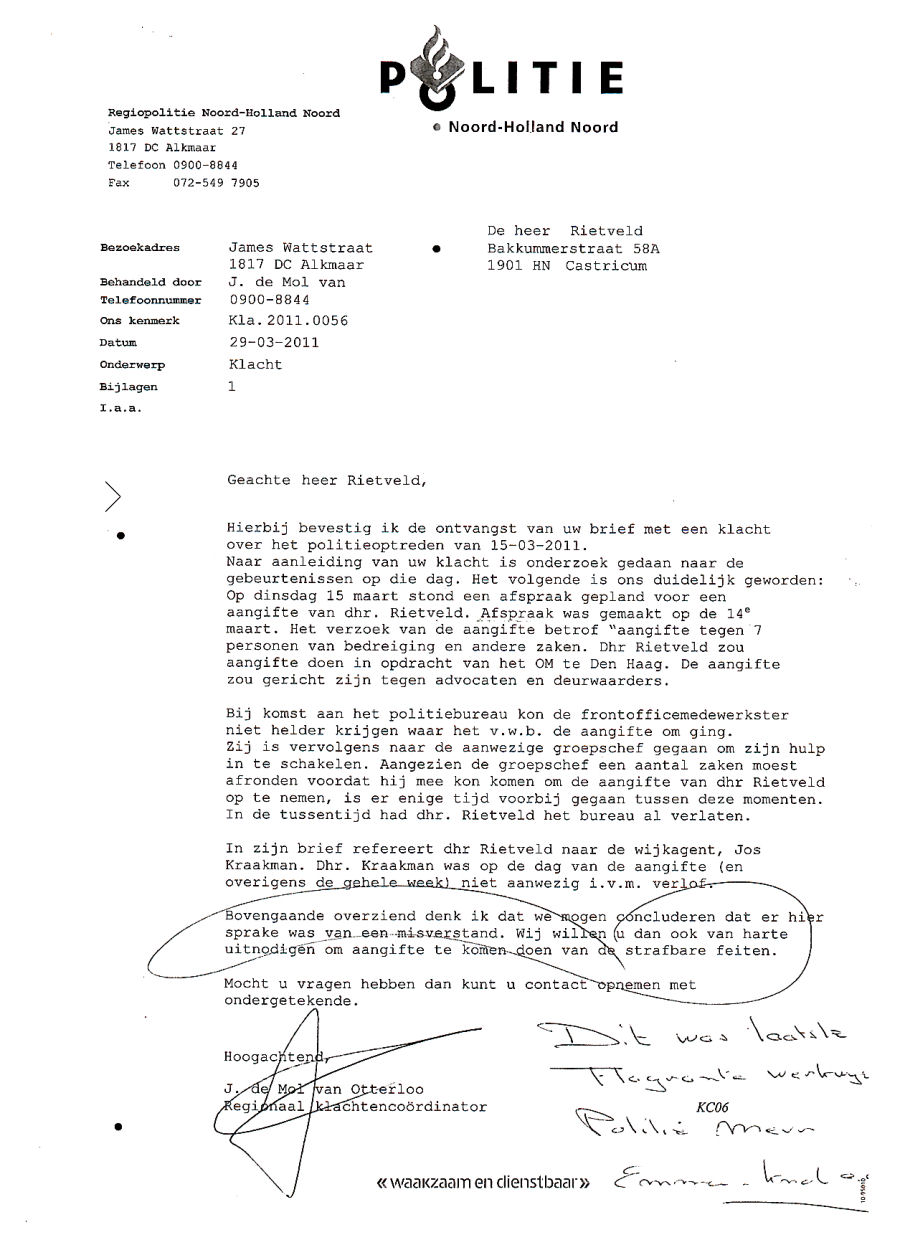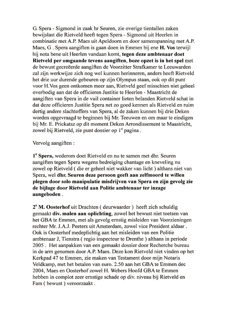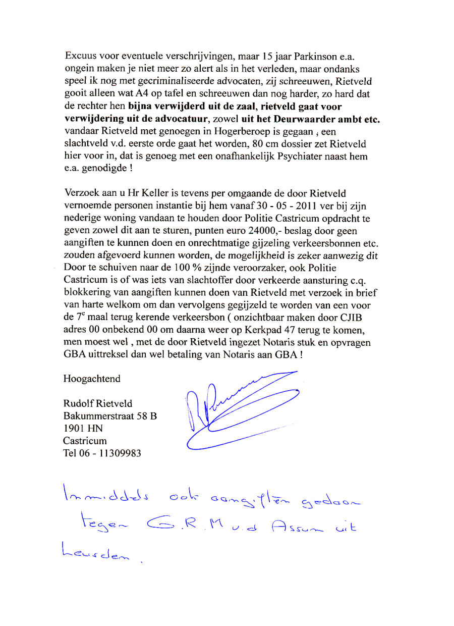 Aan: Mr. G.W. van der Burg (hoofdofficier van Justitie)Organisatie: Landelijk Parket Openbaar Ministerie Rotterdamden Haag Adres: Posthumalaan 74 Plaats: 3000 AJ Rotterdam Inzake: Uitnodiging van uw persoon/organisatie om volgens de wettelijke verplichting volgens B 162 Sv als kennisdrager aangifte te doen van bij u bekende en bewijsbare strafbare feiten, die gepleegd zijn door een derde. Geachte mr. van der Burg, Hierbij voeg ik enkele bewijzen toe ( er zijn er meer indien nodig) aan deze uitnodiging van uw kennisdragerschap over bij u bekende en bewijsbare strafbare feiten, die zijn gepleegd door een derde persoon of organisatie, waarvoor in geval van een maatschappelijk instelling het bestuur verantwoordelijk is. Met vriendelijke groet