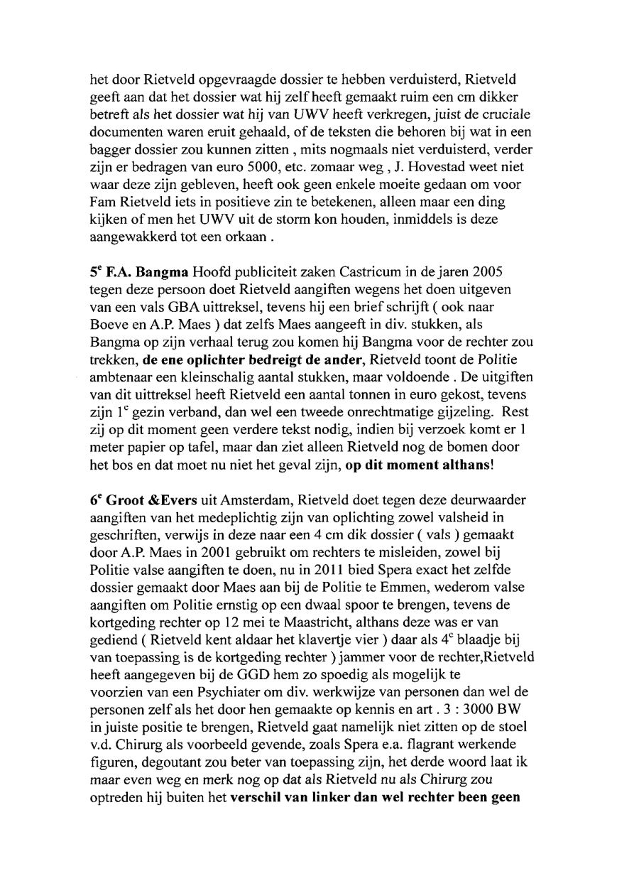Document met procedure tegen mr. Maes van Dommerholt & van Dijk in Zwolle