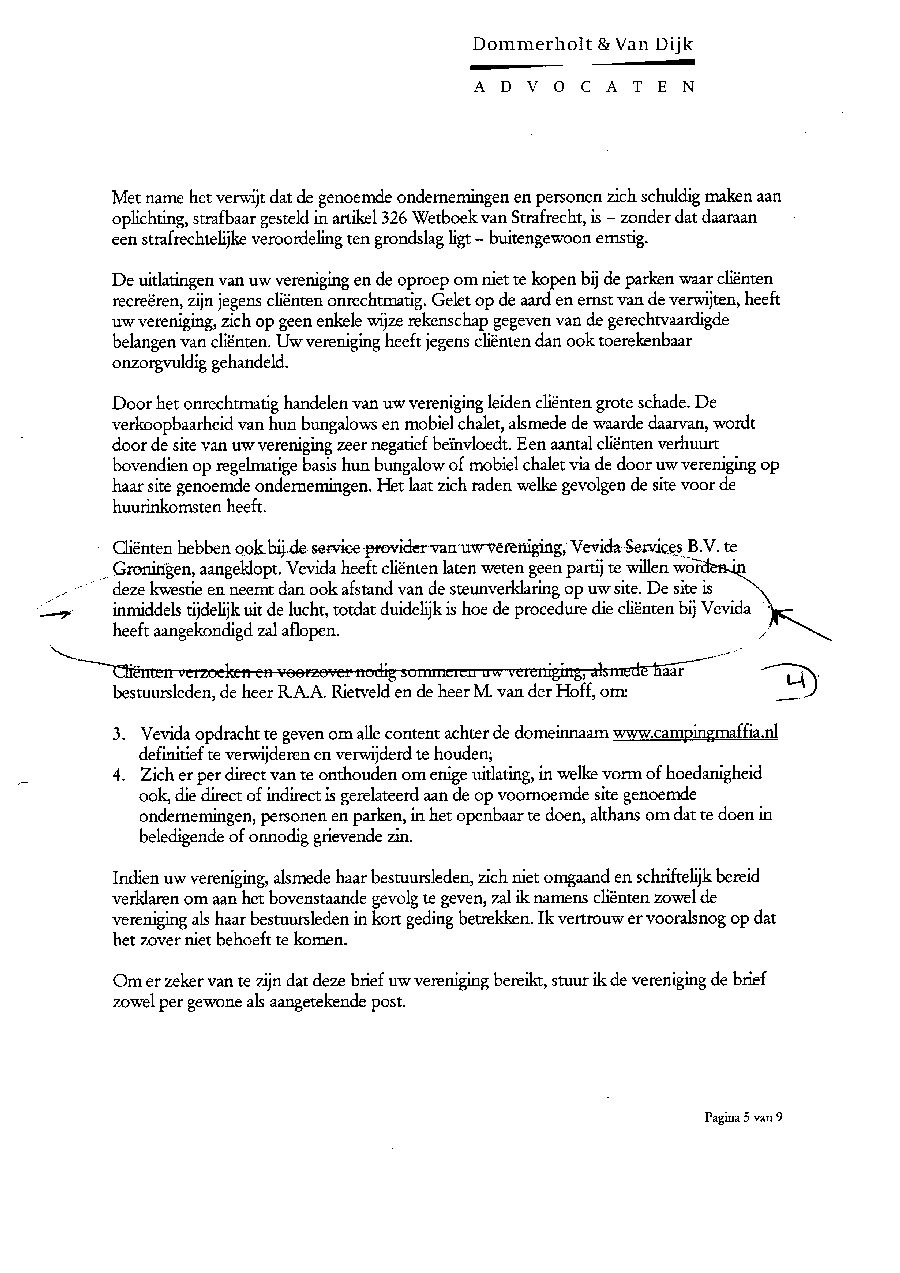 Brief aan SDN met de sommatie om de website van Rietveld te verwijderen