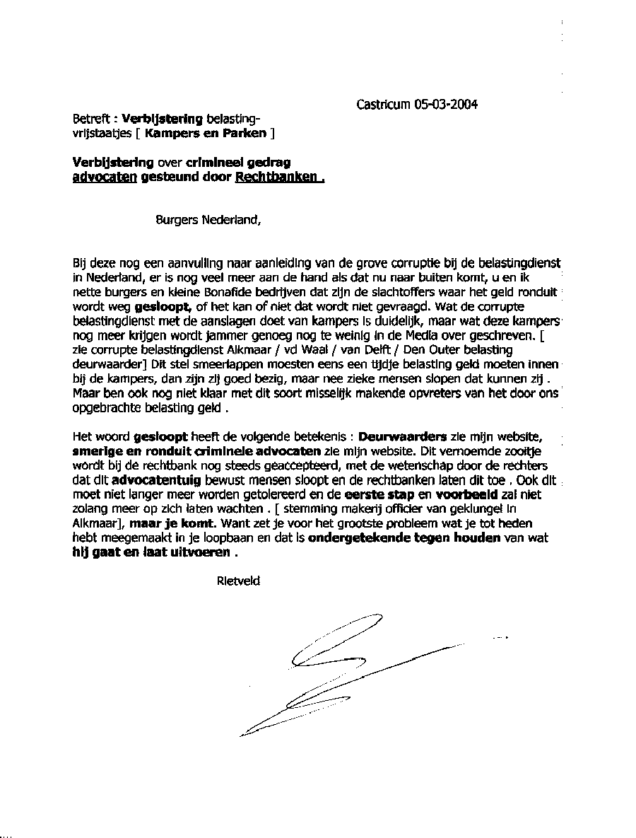 K.: „GEEN NIEUWE INVORDERINGS-MAATREGELEN TREFFEN.