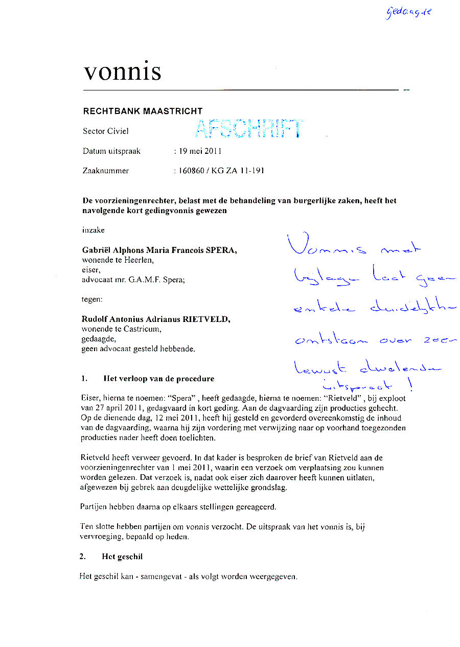 Document met procedure tegen mr. Maes van Dommerholt & van Dijk in Zwolle