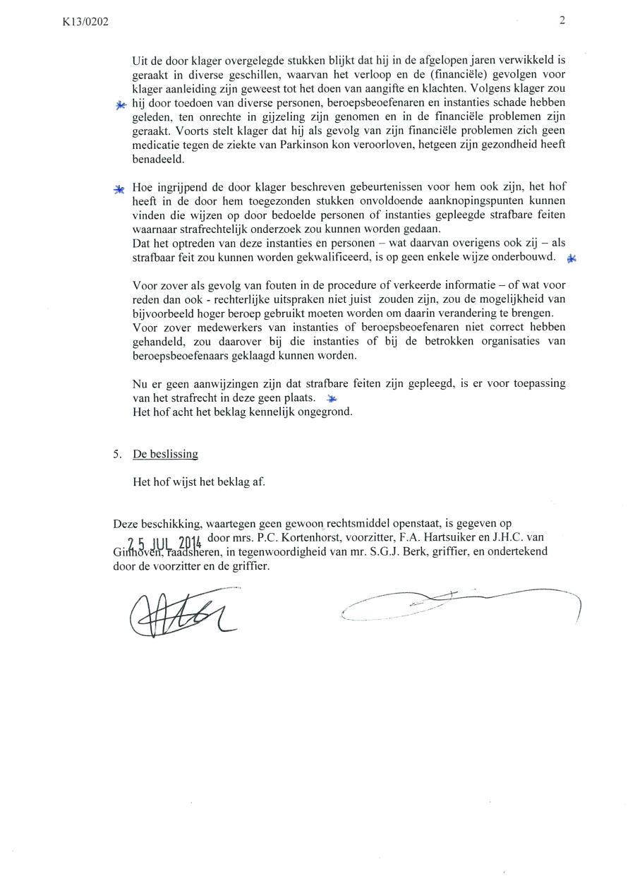 Klacht van ir. L.M. Nevels Klacht van Ria Linsen Klacht van No Cancer Foundation Klacht van mr. Mic van Bremen |