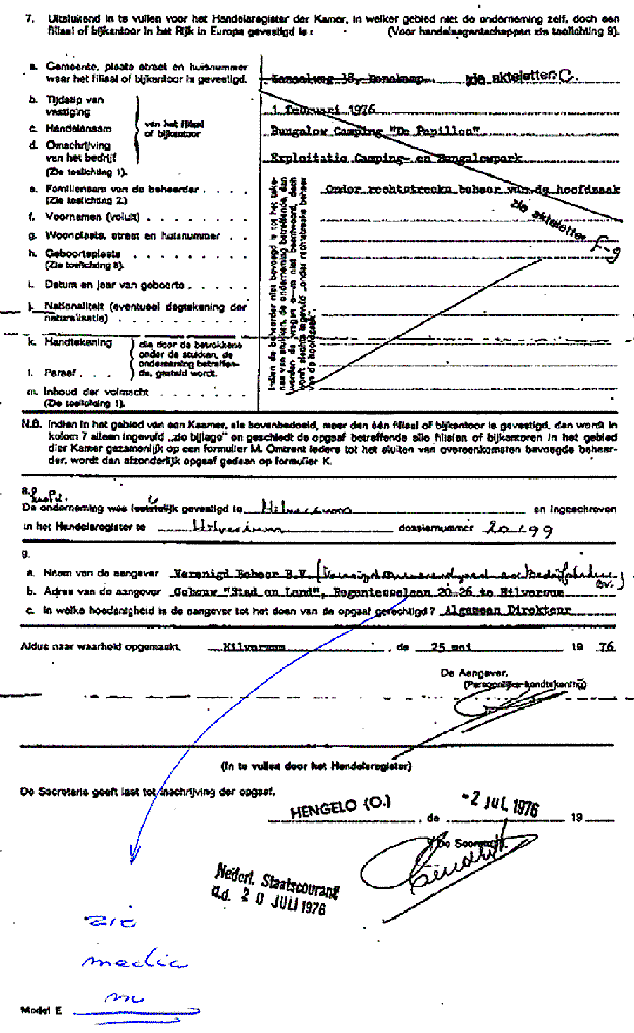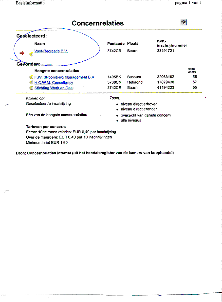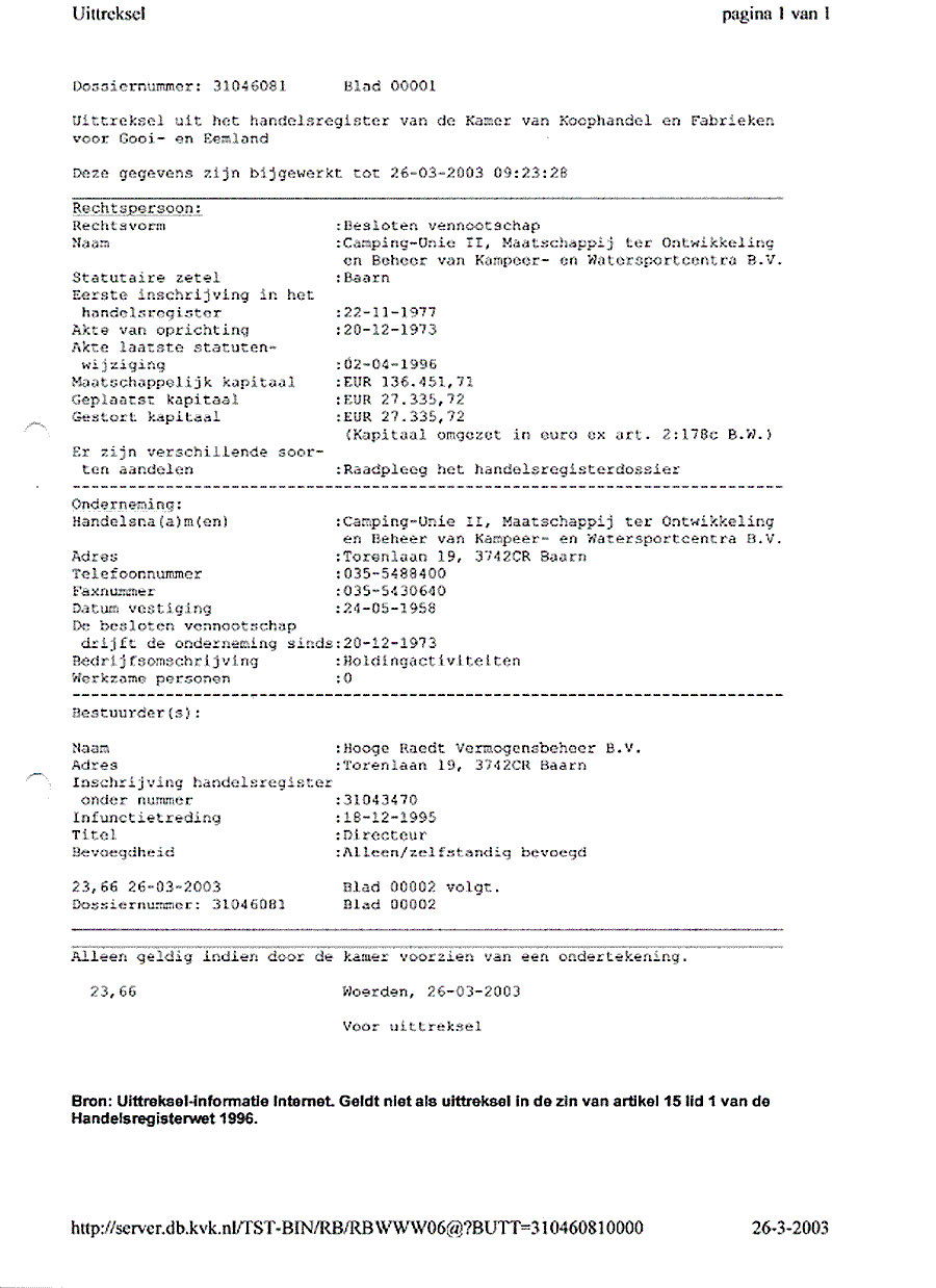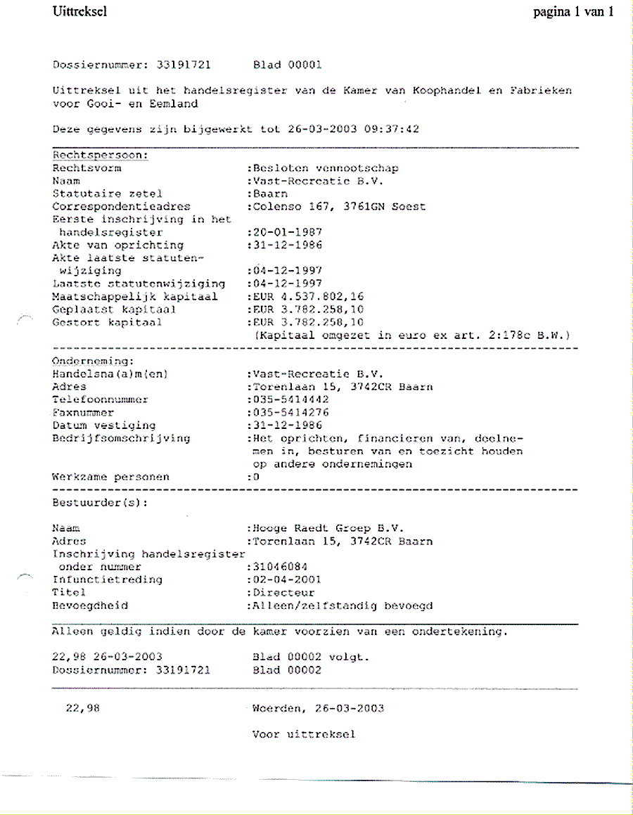 Kadastergegevens Kamer van Koophandel van conglomeraat van parken van Bergervoet sr.