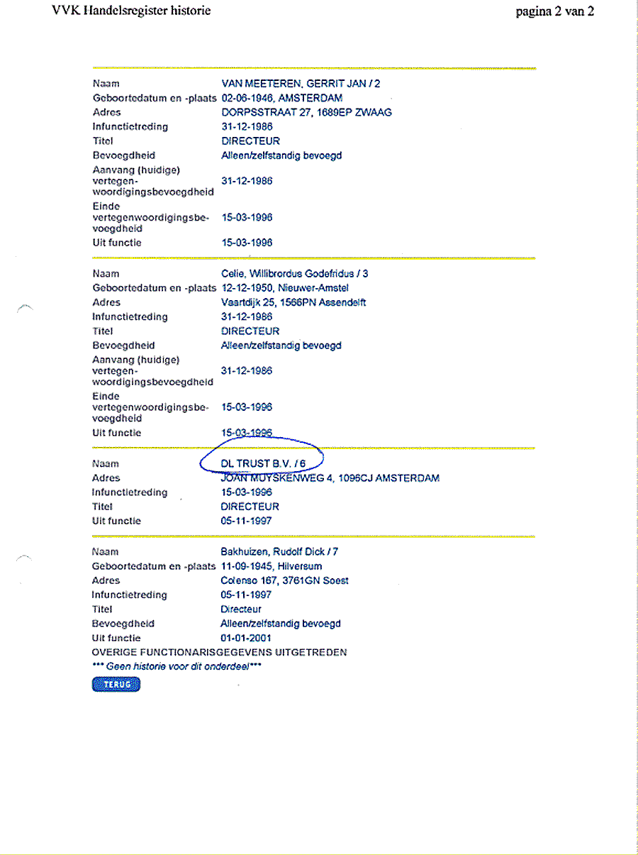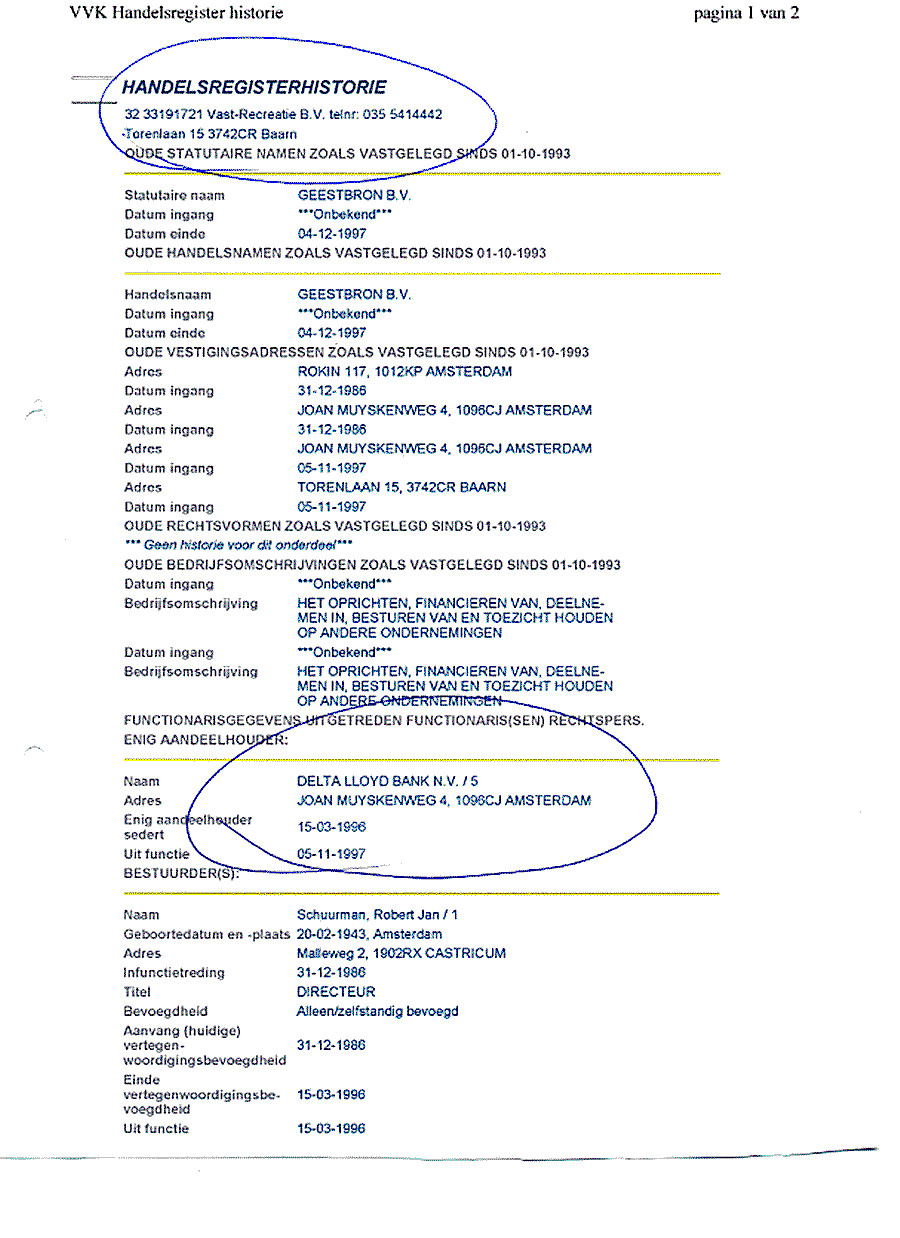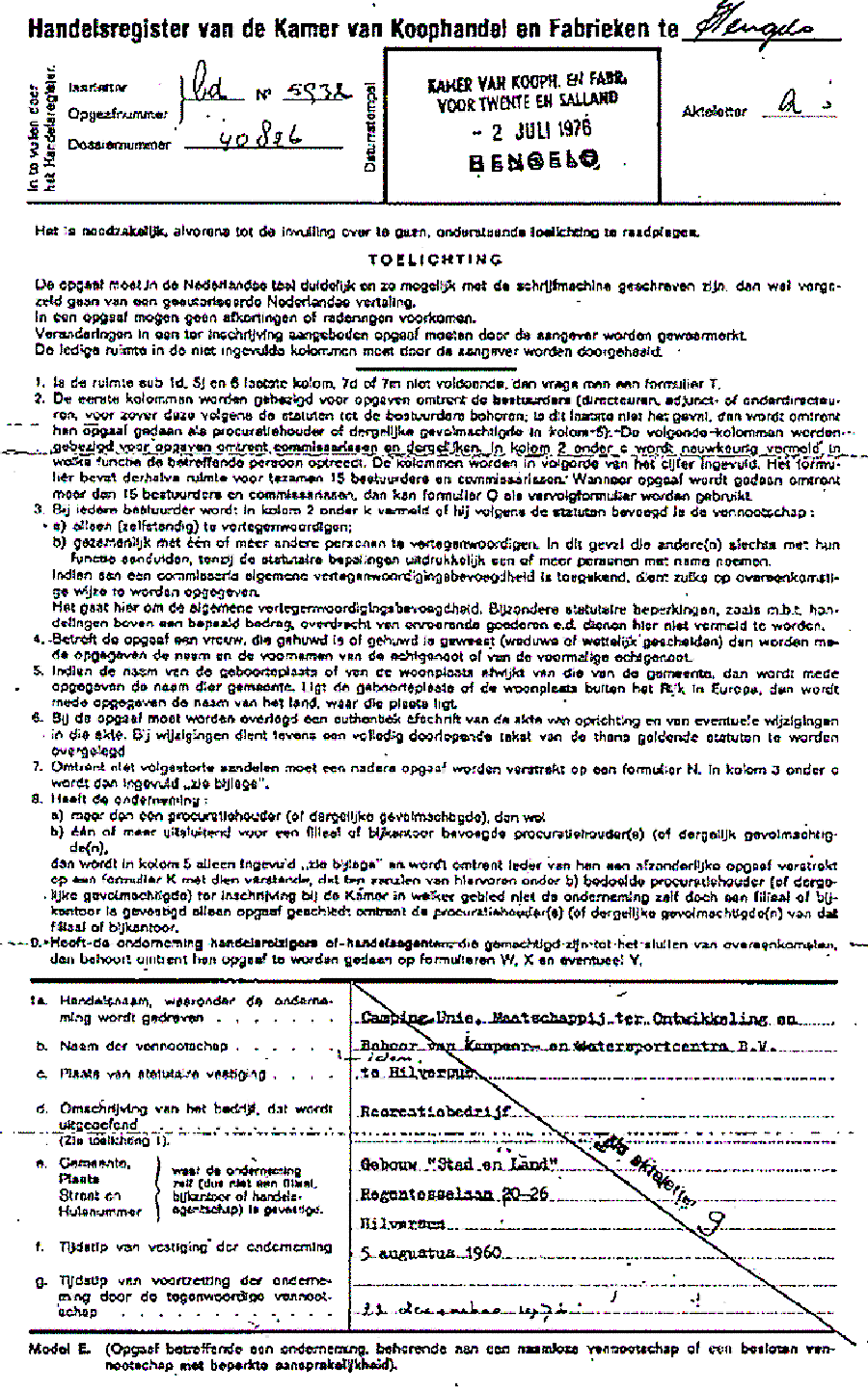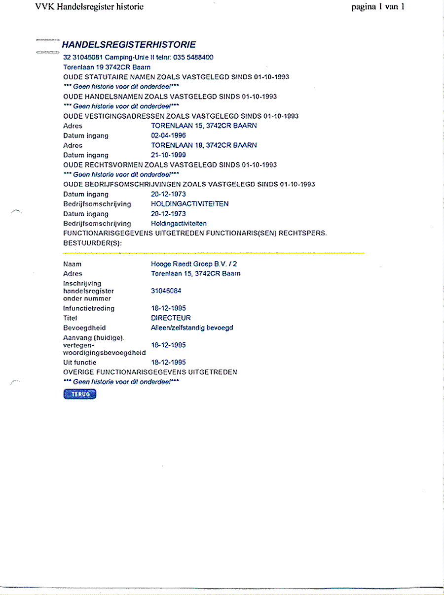 Achtergrond over de handelsregisterhistorie van Aegon Recreatie BV