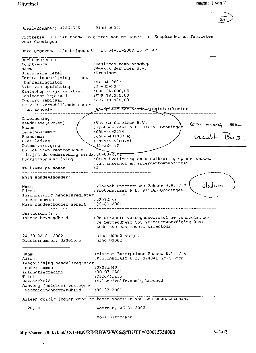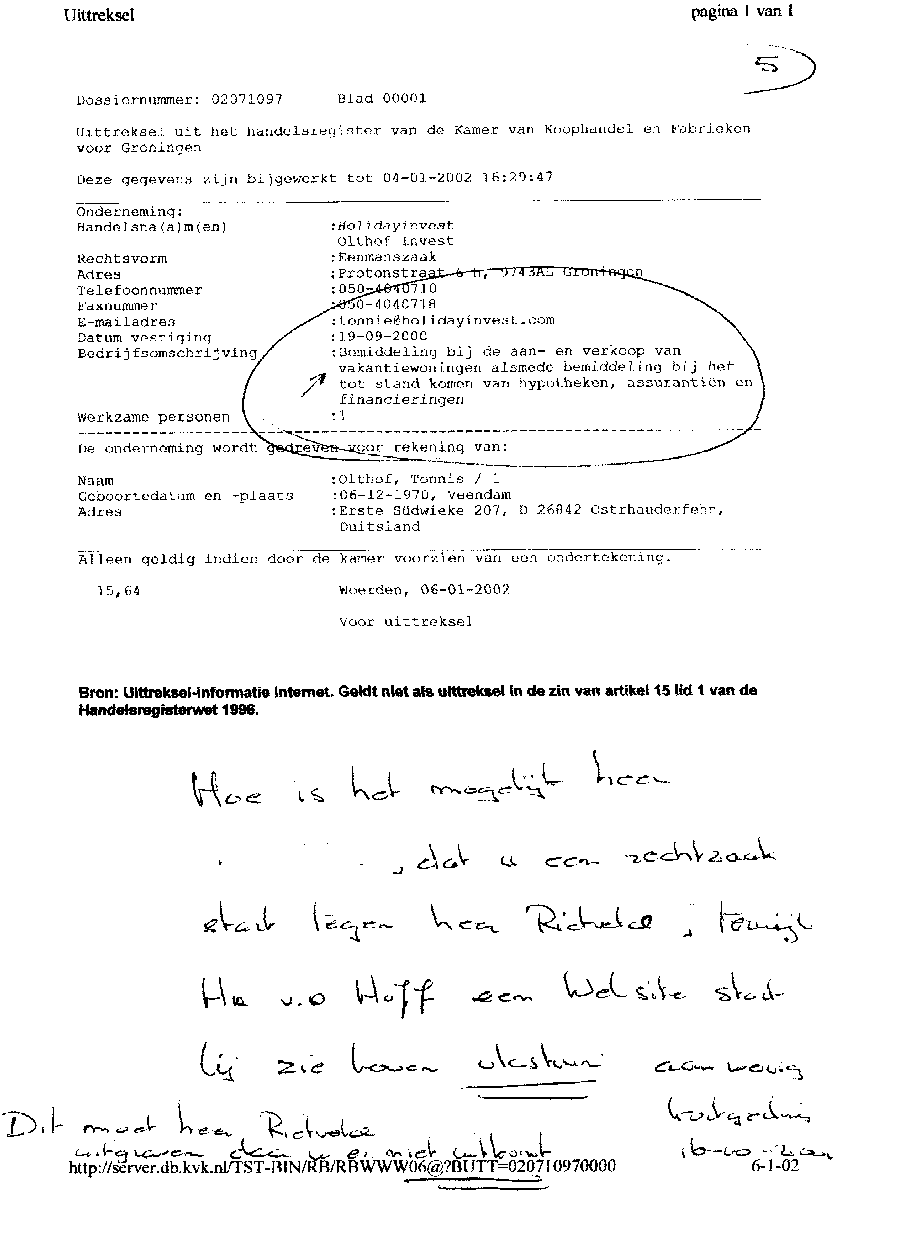 Kadastergegevens Kamer van Koophandel van conglomeraat van parken van Bergervoet sr.