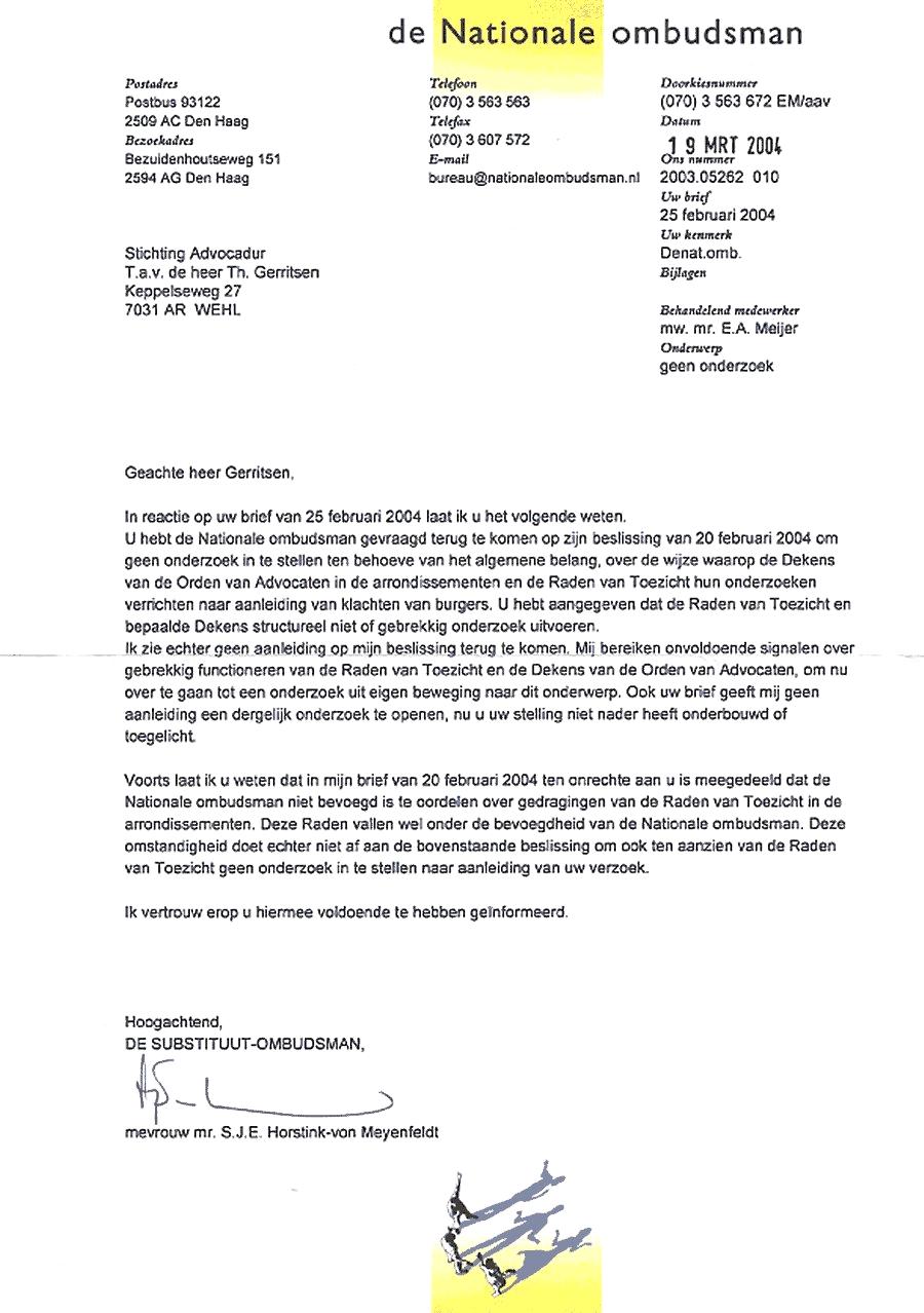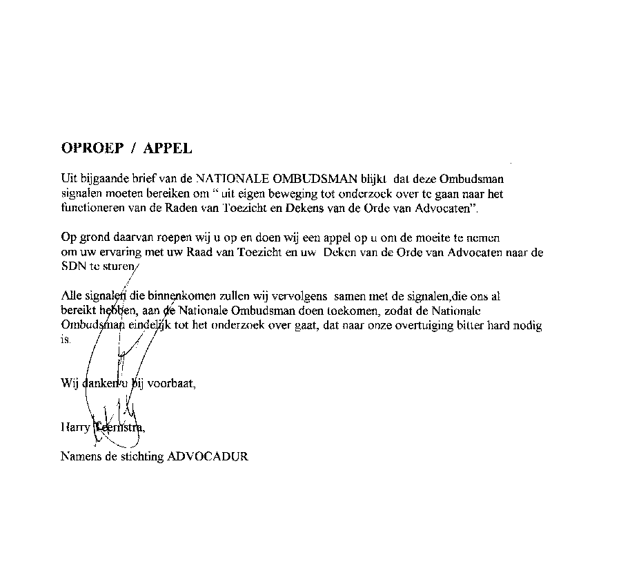 Harry Teernstra verzoekt voor de Stichting Advocadur