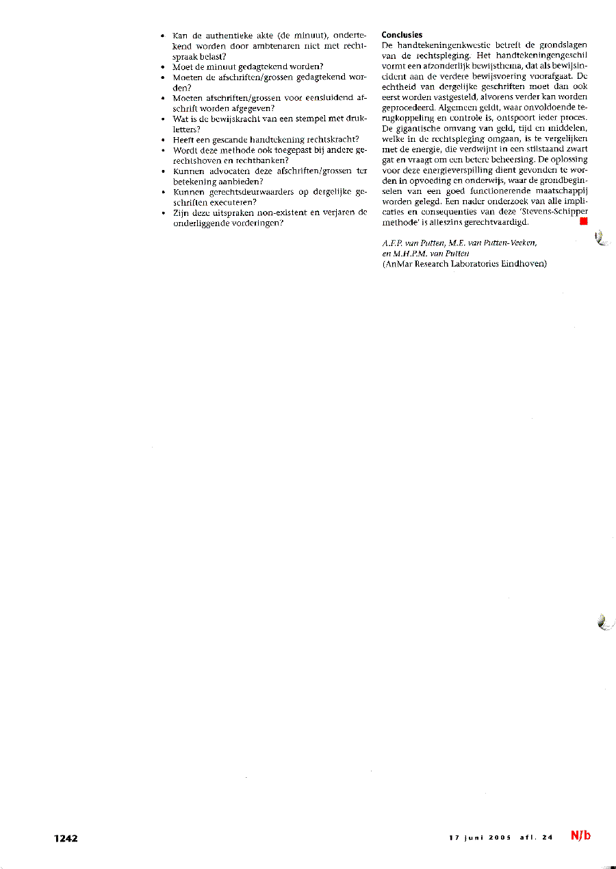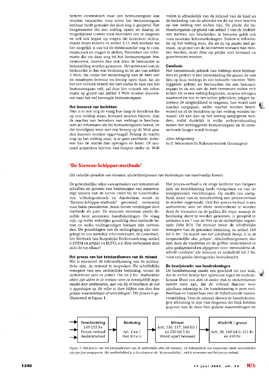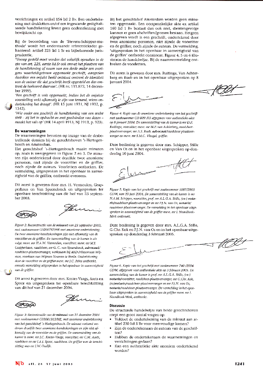 Onder verwijzing naar de publicatie in het Nederlands Juristenblad, nr. 24, 17 juni 2005 getiteld: "De Stevens-Schipper methode" Het valselijk opmaken van minuten, afschriften / grossen van beslissingen van meervoudige kamers", wordt u verzocht de eerste en laatste bladzijde van de in uw bezit zijnde grosse van arresten van meervoudige kamers, te sturen naar: