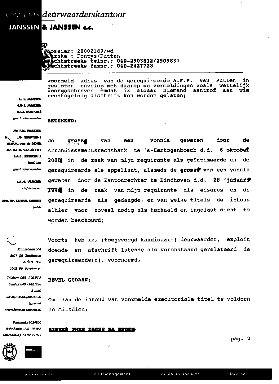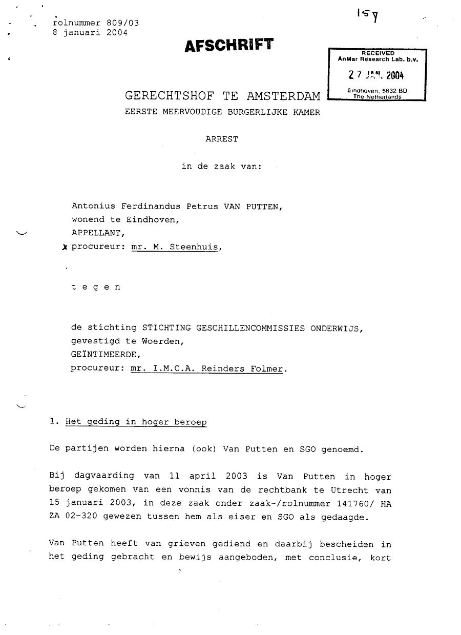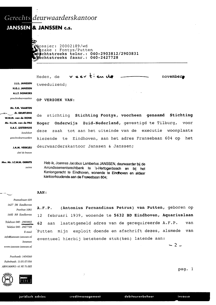 Prof. dr. ir. Anton. F.P. van Putten verzette zich als klokkenluider tegen de HBO-fraude bij de Fontys Hogeschool in Eindhoven en werd daarom op staande voet ontslagen toen hij dat meldde aan de Europese Commissie. Zie het uitdragen kernwaarden van de rechtsstaat naar de ISO-9000 norm? Hij ontdekte dat door het bestuur van Hogeschool Fontys met een valse handtekening van hem een aanvraag voor Europese subsidie was gedaan (buiten zijn medeweten) in het kader van het Copernicus-programma. Zie het interview en het onwettig handelen m.b.t. de openbaarheid van gerechtelijke uitspraken en vonnissen bij de rechtbank in Rotterdam Belangenverstrengeling, vriendjespolitiek en afhankelijkheid van verplichte procesvertegenwoordiging noopten hem om een rechtvaardig oordeel over de wraakneming van het Fontys-bestuur bij de rechter af te dwingen. Fontys had het namelijk ook voor elkaar gekregen om twee rechtsongeldige arresten te laten betekenen en executeren, die niet ondertekend waren door de raadsheren en niet afgegeven voor eensluidend afschrift conform de minuutakte. De ondertekening geschiedde zelfs door een dame van de administratie. Dat is te gek voor woorden. Echt eenvoudig is het verkrijgen van echt recht zeker niet, daarom heeft hij voor donderdag 6 mei 2004 een uitnodiging gekregen van de president van het Gerechtshof mr. N.A.M. Schipper in Amsterdam om zaken die fout gingen in de rechtsgang te bespreken en een oplossing te vinden.