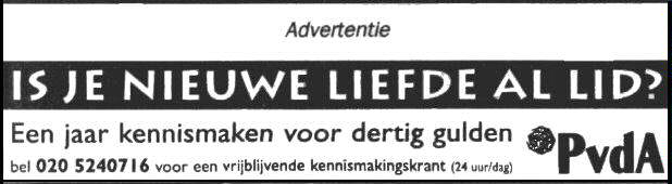 ![]() Het lijkt tijd om de Partij van de Arbeid ook eens aan een herkeuring te onderwerpen. Wanneer we het verdedigen van de sociale structuur van Nederland beschouwen, dan lijkt de PvdA duidelijk "arbeidsongeschikt" te zijn. De PvdA werkte mee aan nieuwe wetten over de sociale zekerheid. Onder ander de Nieuwe Algemene Bijstandswet, die honderdduizenden mensen (vooral gezinnen) in een zeer gespannen situatie brengt. Man en vrouw worden met de sollicitatieplicht tegen elkaar opgezet, nu ook de sancties op de vrouw van toepassing zijn geworden. Hadden we eerst één werkloze uitkeringsgerechtigde als gezinshoofd in de statistieken, nu hebben we er plotseling twee. De man én de vrouw. De werkloosheid stijgt dus in absolute getallen, waaraan dan weer nieuwe draconische maatregelen en bezuinigingen kunnen worden ontleend. Toch verandert er niets aan de structuur en het volume van de werkgelegenheid. De hierboven beschreven WAO-ellende is duidelijk ook een verantwoordelijkheid van de PvdA. De afschaffing van de ziektewet waaraan de PvdA heeft meegewerkt, brengt niet alleen de werknemers onder grote druk maar ook de werkgevers; vooral kleine. Kortom hier is een regeringspartij die met het verraden van zijn eigen historie, sociale uitgangspunten en integriteit direct verantwoordelijk is te stellen voor de verpaupering van miljoenen mensen. Op het platte land en in de binnensteden is de nood hoog, zeer hoog. Wilt u lid worden van een partij die dat allemaal heeft bewerkstelligd? |