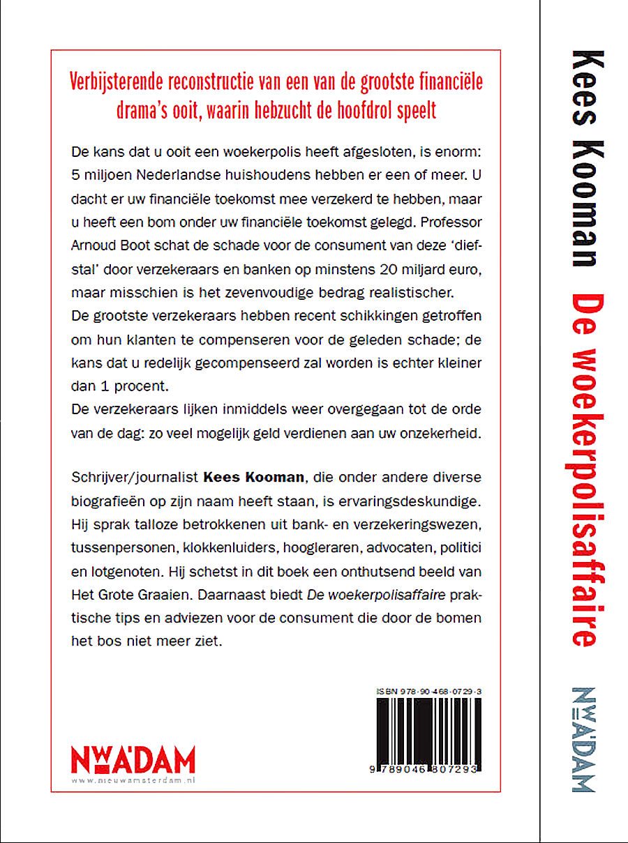 Hoofdstuk 15 Brand Het is 1989, de beurzen stuiteren van optimisme, je laat je verleiden het rendement van je huisbankier (8,5 procent) in te ruilen voor ‘veel betere alternatieven’ bij een concurrent en komt er na drie jaar achter dat 700.000 gulden is verdampt. Je gaat procederen, verliest iedere keer opnieuw, en weet in 2009 nog steeds niet precies waaraan je toe bent. Ja, dan ben je in staat tot een wanhoopsdaad. Twee hoogleraren en wijlen Theo van Gogh op de bres voor Paul Quekel, aartsintrigant, gedupeerde en gedetineerde. Half Nederland heeft Paul Quekel het afgelopen decennium bestookt met waarschuwingen, inclusief minister-president Balkenende die hem in een brief op 5 september 2002 vriendelijk doch dringend verzocht zijn ‘zeer frequente faxberichten niet langer te zenden’. Ook journalisten en andere politici bracht hij tot wanhoop met een niet aflatende stroom berichten, geschreven in de allerhoogste staat van opwinding. ‘De heer J.P. Balkenende c.s., bekend van krachtdadig optreden, waken over jullie: huis-, tuin- en keukenburgers, stemvee dat eens in de vier jaar mag blaten en straks tot de ontdekking komt dat Nederland failliet is. Ik ageerde al vanaf 1995 tegen woekerpolissen. ‘Ja, meneer Balkenende, ik heb u hierover regelmatig op de hoogte gesteld, dus u kunt nooit zeggen: dat heb ik niet geweten. Durft u al de gezinnen die op einddatum van hun hypotheek in enorme financiële problemen zullen komen, nog ooit recht in de ogen te kijken? En zult u zich samen met Wim Kok en Gerrit Zalm niet nu al erg schuldig voelen?’ De automatiseringsdeskundige, zoon van een treinmachinist en schatrijk geworden met zijn briljante wiskundige inzichten, is lang beschouwd als een dorpsgek die niets anders te doen had dan het oproepen van de zwartste doemscenario’s. Hij voorzag de kredietcrisis, zoals door vrienden wordt bevestigd. En nu langzamerhand de grootte van het polisprobleem begint door te dringen, kun je de man uit Waalwijk toch moeilijk visionaire kwaliteiten ontzeggen. Hij had vijftien jaar geleden al door welke financiële lawine in aantocht was. Enig opportunisme was hem niet vreemd bij het turen in zijn glazen bol, zoals uit dit verhaal met afschuwelijke afloop zal blijken. Maar Paul Quekel zag geen spoken. Die rehabilitatie verdient hij in elk geval, met terugwerkende kracht en zo veel jaren later, nu hij in 2010 is beland in de gevangenis van Vught. Het bizarre verhaal van Paul Quekel senior doet denken aan wijlen Willem Oltmans, de journalist die na eindeloos juridisch getouwtrek op zijn oude dag door de overheid in het gelijk werd gesteld. De vergelijking kwam van wijlen Theo van Gogh, een andere luis in de pels van het establishment. Toen hij zijn openbare aanklacht publiceerde op zijn website De Gezonde Roker leefden hij en Oltmans nog. ‘Net als Willem lepelt Quekel met een fotografische nauwkeurigheid procesdata en ontmoetingen op. Het onrecht dat hem is aangedaan, is minstens zo flagrant als dat wat Oltmans overkwam die dertig jaar nodig had om aan te tonen dat Luns hem het beroepsleven onmogelijk had gemaakt. Maar het verschil blijft natuurlijk dat Oltmans, zittend in de Bijstand en woonachtig op een krot, de allure van een aristocraat uitstraalde.’ Maar Quekel, tot voor kort eigenaar van een kapitale villa, aldus stelde Van Gogh fijntjes vast, is net zo goed ‘het vleesgeworden voorbeeld van de zegeningen waartoe het kapitalisme leidt’. Letterlijk kapot geprocedeerd door de verzekeringsmaatschappij annex bank waaraan hij zijn pensioengeld had toevertrouwd en andere investeringen in de toekomst. ‘Hij wordt beschouwd als een ongeleid projectiel, zo’n halve gare waarover de jongens en meisjes van de Nederlandse pers liever cynisch hun schouders ophalen. Quekel is een gebroken man die leeft op kosten van zijn zoon en die wanhopig e-mailt met Kamerleden en vertegenwoordigers van de pers. En waarom zou hij, na alle manieren waarop Delta Lloyd hem juridisch en financieel beentje heeft gelicht, dat bedrijf niet “een criminele organisatie” mogen noemen?’ Paul Quekel, niet erg bang aangelegd, was verhaal gaan halen bij bestuurders in Wassenaar. Eerst telefonisch (‘U bent een crimineel en we zullen u behandelen als een crimineel,’ hoorde hij nog voordat de hoorn werd neergesmeten) en daarna ook bij de hoogste baas Niek Hoek thuis. ‘Die ontving mij alleraardigst. Hij heeft me aangehoord en beloofde plechtig op mijn zaak terug te komen. Weet je waar dat laatste gebeurde? Op de rechtbank van Den Bosch, waar ik werd aangeklaagd wegens smaad!’ Het zwarte schaap uit Brabant werd door een rechter veroordeeld tot een boete van 5000 euro voor iedere keer dat hij de zojuist gebezigde kwalificatie uitte. Voor Theo van Gogh (www.sdnl.nl/theovangogh.htm) een goede reden zijn lezers en lezeressen uit te nodigen een drol te deponeren in de tuin van de familie Hoek, D-weg 14 te Wassenaar. De gezonde roker stelde zijn publiek ook voor telefoongesprekken te voeren met de familie Hoek en publiceerde daartoe ‘geheel gratis’ het privénummer in zijn column. Het dossier Quekel/Delta Lloyd, beheerd door strafpleiter professor Geert-Jan Knoops, is inmiddels een halve meter dik. Het gaat hierbij vooral om verkeerde beleggingen met duizelingwekkende bedragen, niet alleen voor honoraria om al even duizelingwekkend hoge belastingaanslagen juridisch te bestrijden. De aanklacht komt (aldus bewindvoerder Dorrestijn) in een notendop neer op: onzorgvuldig beheer, het niet nakomen van contractueel overeengekomen rendementsprognoses, verwaarlozing van de zorgplicht, machtsmisbruik en het zich verschuilen achter een van de vele bedrijfsdivisies. In 1990 had de multimiljonair uit Waalwijk naar eigen zeggen voor 1.600.000 gulden voor polissen in een depot gestort, waar vier jaar later nog negen ton (in guldens) van over was. Verlies: 700.000 gulden. ‘Terwijl Delta Lloyd in de periode van 1989 tot 1995 een bedrijfsrendement publiceerde van gemiddeld 16,9 procent.’ De t