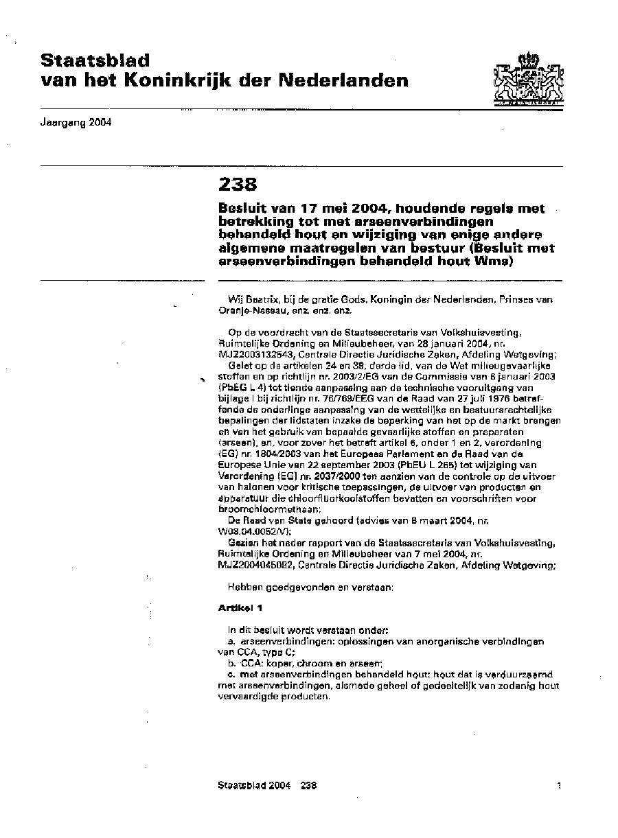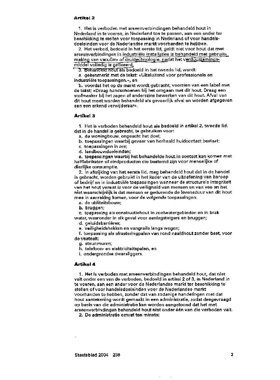 Van Geel wil af van geïmpregneerd hout Dinsdag 13 januari, DEN HAAG - Staatssecretaris Van Geel van Milieu wil dat er een totaalverbod voor geïmpregneerd hout komt. Hij zal zich daarvoor sterk maken bij de Europese Commissie, zo kondigde hij gisteren aan op de AVRO-radio. Dit jaar komt er al een Europees verbod op hout dat is behandeld met arseen, maar Van Geel vindt dat niet genoeg. In verband met risico's voor de gezondheid en het milieu is het in zijn ogen nodig om ook hout te verbieden dat is geïmpregneerd met zware metalen als koper en chroom. In 2000 probeerde Nederland ook al een totaalverbod tot stand te brengen maar dat kreeg geen steun. Volgens een woordvoerster van Van Geel is de Europese Commissie nog niet overtuigd van de gevaren van dit hout. Medewerking van de EU is wel noodzakelijk om een verbod effectief te laten zijn. Volgens haar loopt er al een briefwisseling tussen Brussel en Den Haag over de kwestie. Vaak zijn tuinmeubelen en -schuttingen gemaakt van geïmpregneerd hout. Volgens deskundigen is al vijftig jaar bekend dat geïmpregneerd hout schade aan de gezondheid kan veroorzaken, zoals kanker, vergiftiging en allergieën. Aanraking moet vermeden worden en ook is er risico voor inademing van de stofdeeltjes, zeker voor mensen die met dit hout werken. Bovendien zijn de stoffen zeer schadelijk voor het milieu. 'Het werd hoog tijd', reageert Ad van Rooij, de milieuactivist uit Sint-Oedenrode die al vijftien jaar strijdt tegen het gebruik van geïmpregneerd hout. Zowel als gedeputeerde in Brabant en als staatssecretaris van Milieu heeft Van Geel al vele alarmerende brieven van Van Rooij mogen ontvangen. 'Hij weet al veel langer dat het fout is, hij gedoogt het alleen, onder druk van de industrie.' Van Rooij hoopt vurig dat Van Geel de slag kan winnen: 'Mijn steun heeft-ie. Maar ik ben heel benieuwd of het CDA, zijn partij, hem de ruimte laat. Ik geloof echt dat hij zelf graag een einde wil maken aan deze toestanden. Hij zal ook wel moeten, want volgens het Europees recht mag je geïmpregneerd hout al lang niet meer gebruiken.'