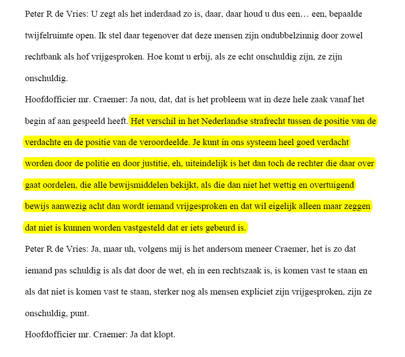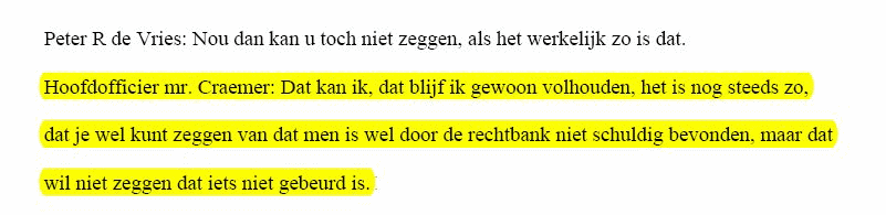 Dat zijn immers de eigen woorden van de hoofdofficier mr. Craemer !! Wij stellen daarom enkele vragen, vanwege de bedreigende taal en eis tot schadevergoeding.